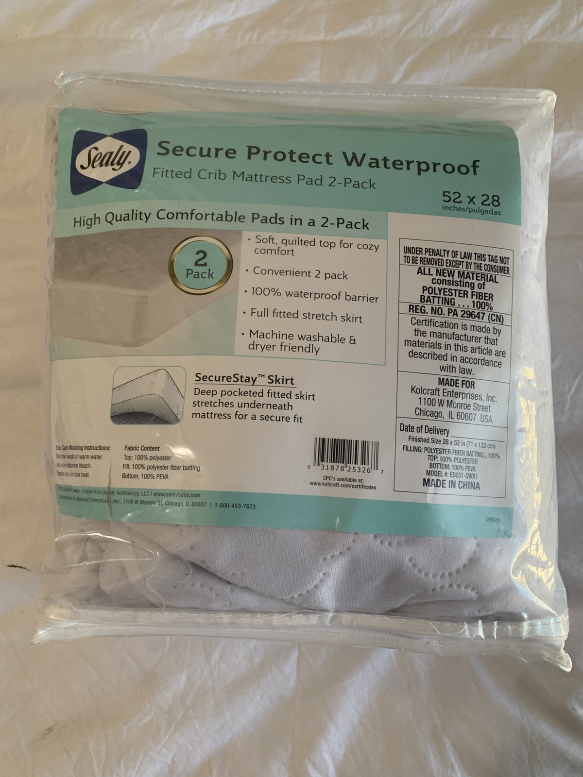 Sealy 2 Pack Waterproof Crib Mattress Pads 52x28 Fitted Stretch Hypoallergenic