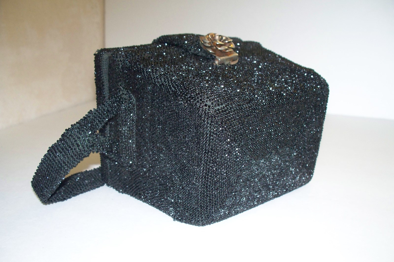 RARE Vintage Victorian Styled 40 50s Crochet Black Beaded Mourning Handbag Purse