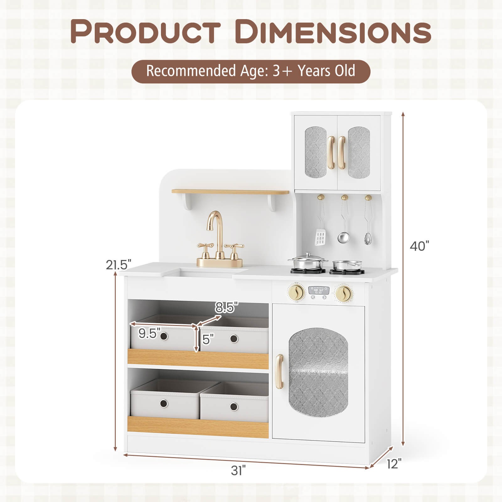 Kids Kitchen Playset Toy Play Kitchen with 4 Fabric Drawers, Stoves, Oven