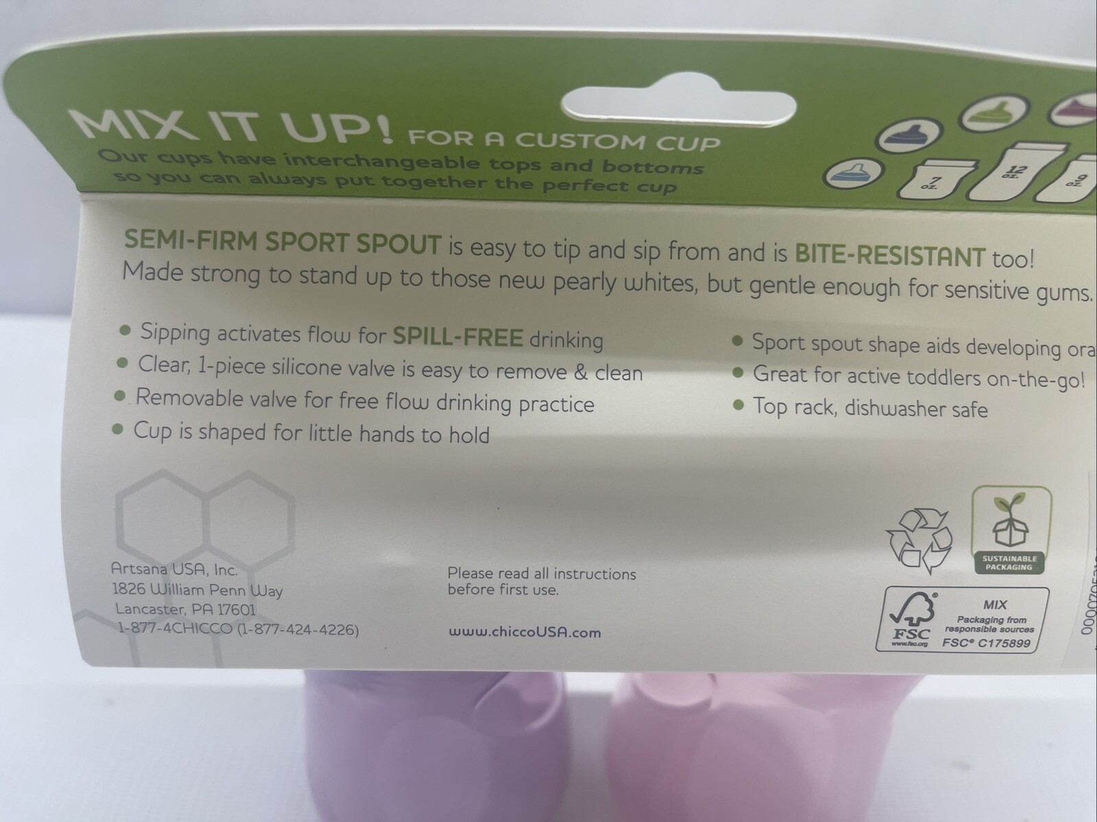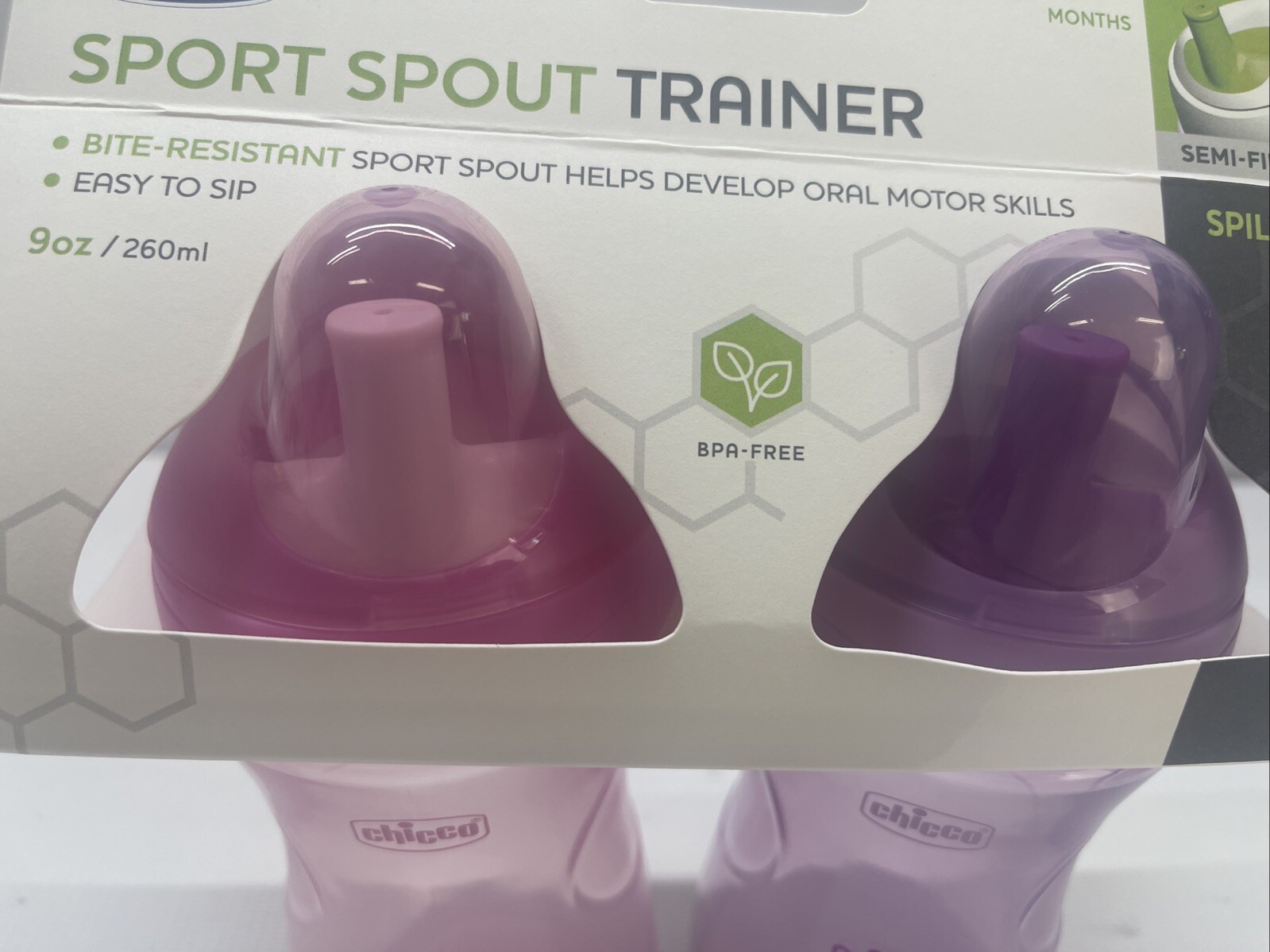 Chicco Sport Spout Trainer Sippy Cup Pink/Purple 9m 9oz 2pk - New