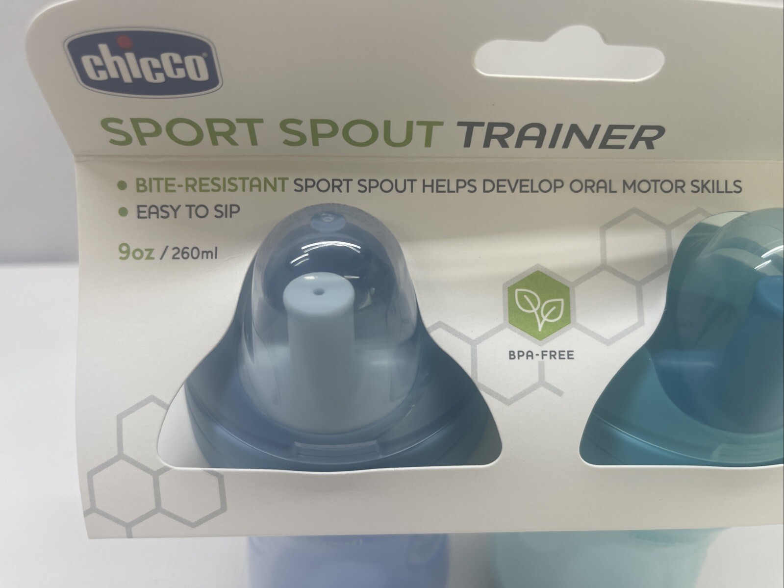 2 Pack Chicco Sport Spout Trainer Blue and Teal Cups 9 oz, 9 Months New