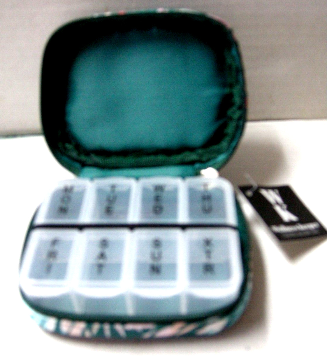Pill Box, 8 Compartments, Floral Fabric Case By DM Merchandising, Brand New