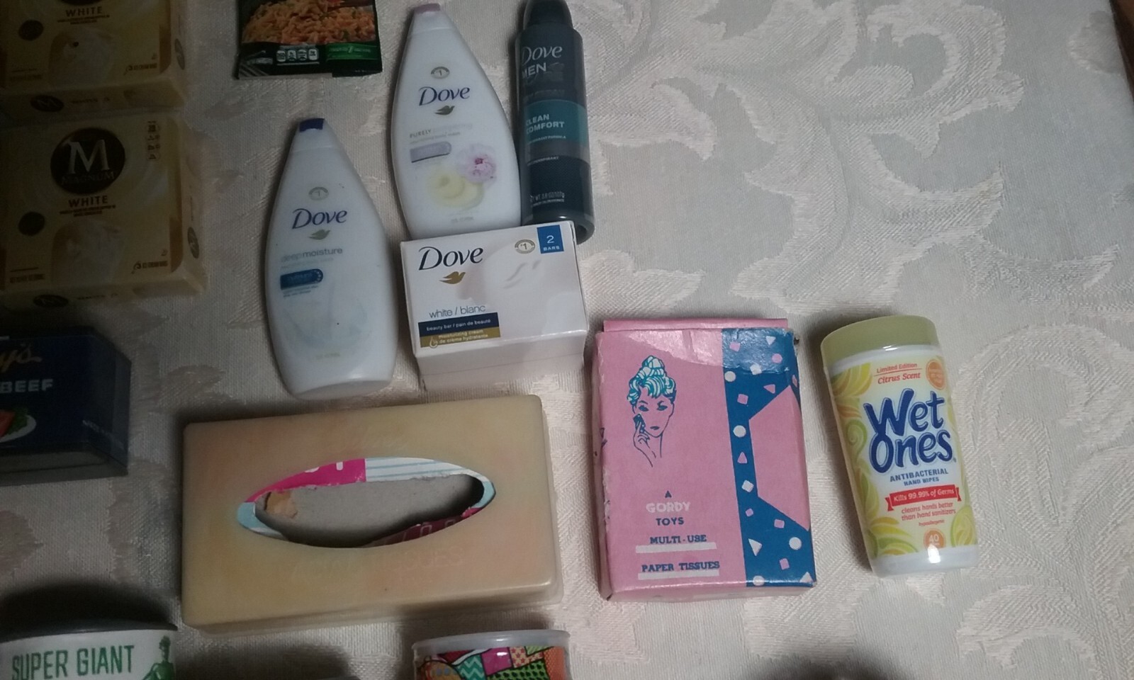 Vtg Play Food Groceries Cans And Boxes and Bathroom Items Name Brands 33 pieces
