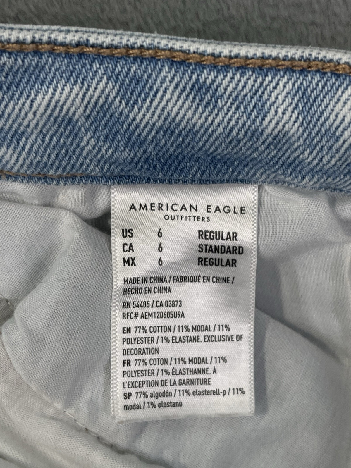 American Eagle Jeans Womens 6 Blue Light Wash High Rise Mom Ripped Denim Stretch