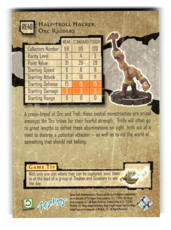 Mage Knight Rebellion Half-Troll Hacker Orc Raiders Card RE40
