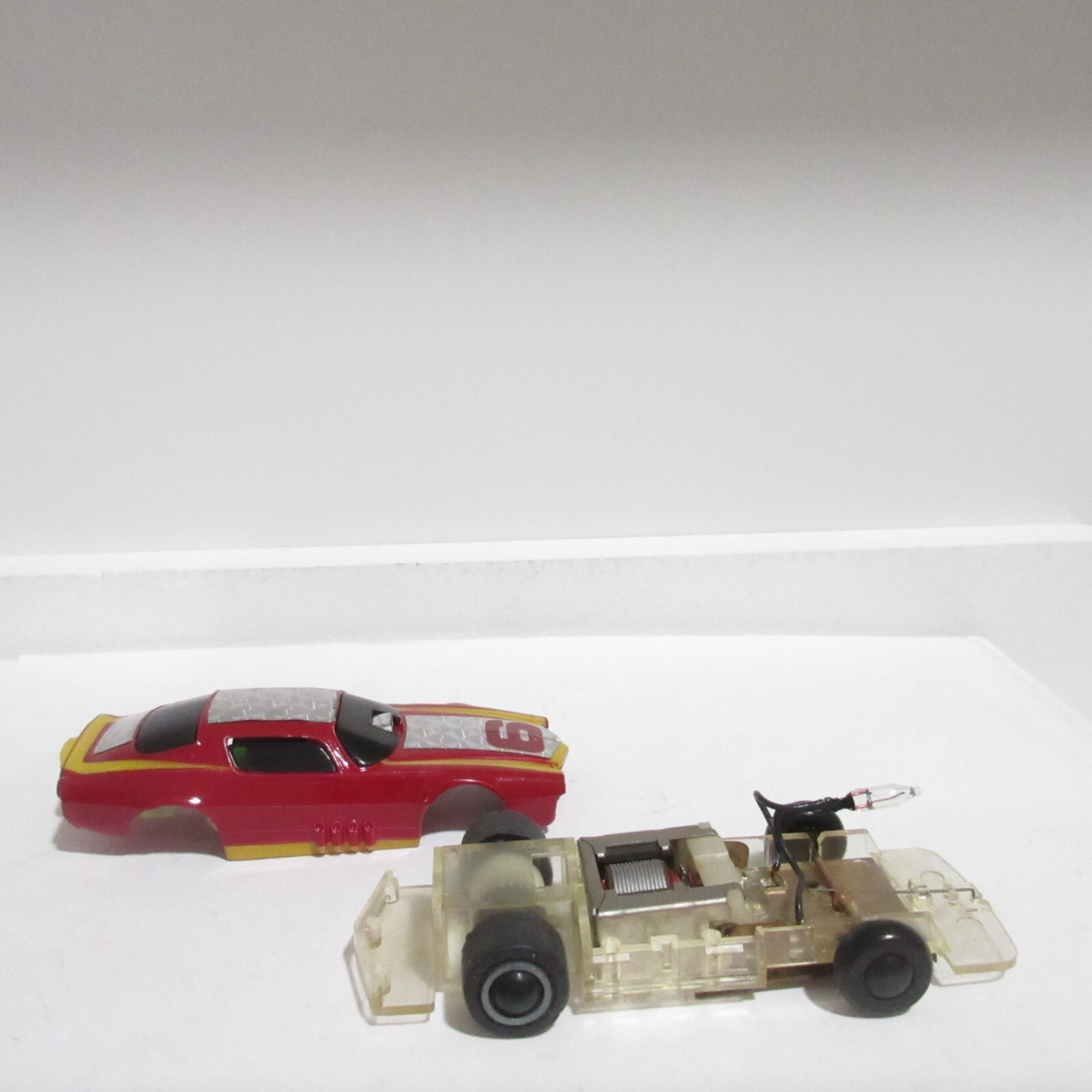 VINTAGE TYCO SLOT CAR HO SCALE LIGHTED CHEVY CAMARO FUNNY CAR DK RED/YEL/CHR NEW