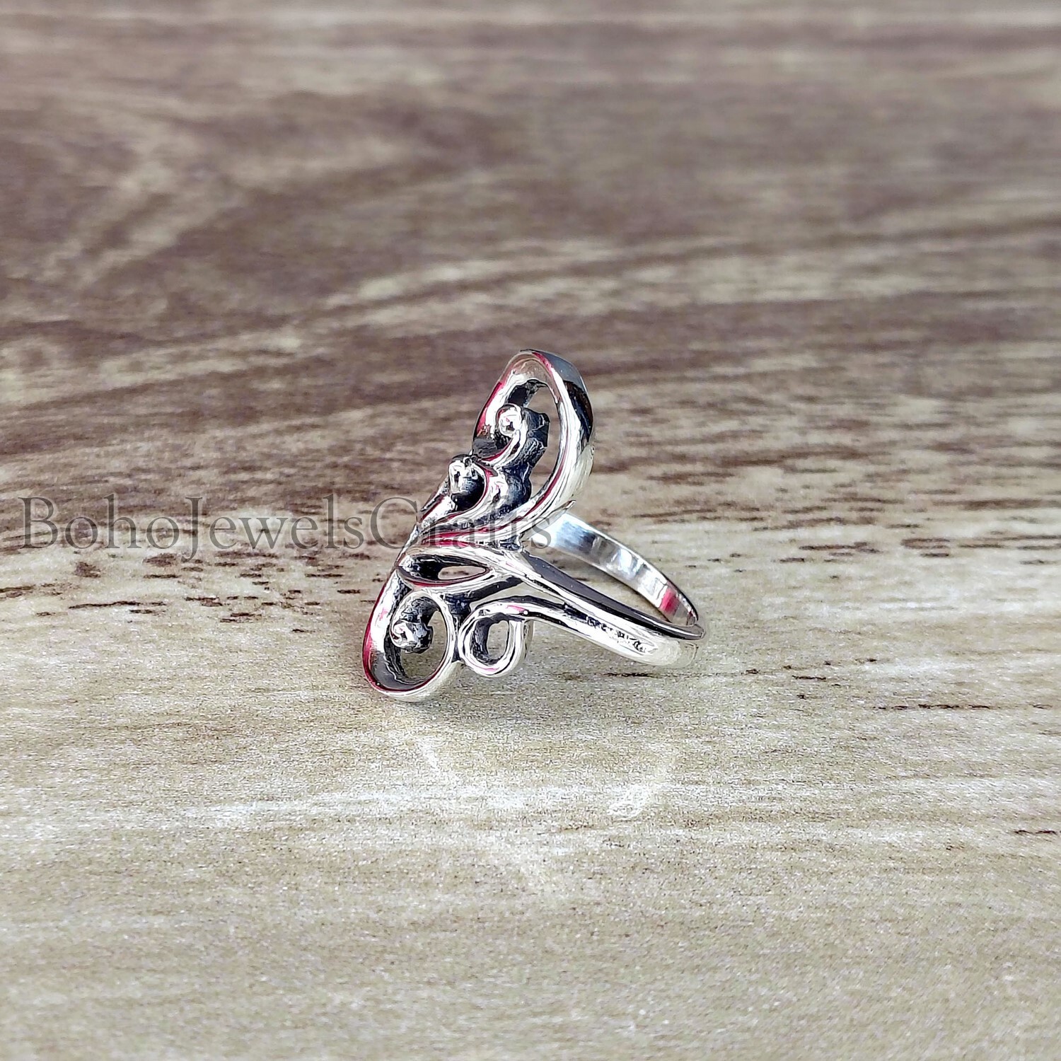 как выглядит Retired Long Ornate Scroll Rings 925 Sterling Silver Handmade Band Women 240 фото