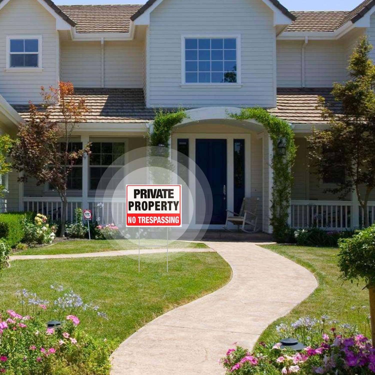 как выглядит MUXYH 2 Pack Private Property No Trespassing Signs with Metal Wire H-Stakes, 12 фото