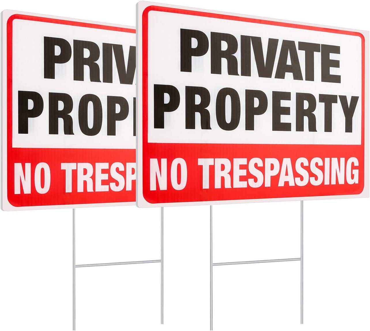 MUXYH 2 Pack Private Property No Trespassing Signs with Metal Wire H-Stakes, 12'