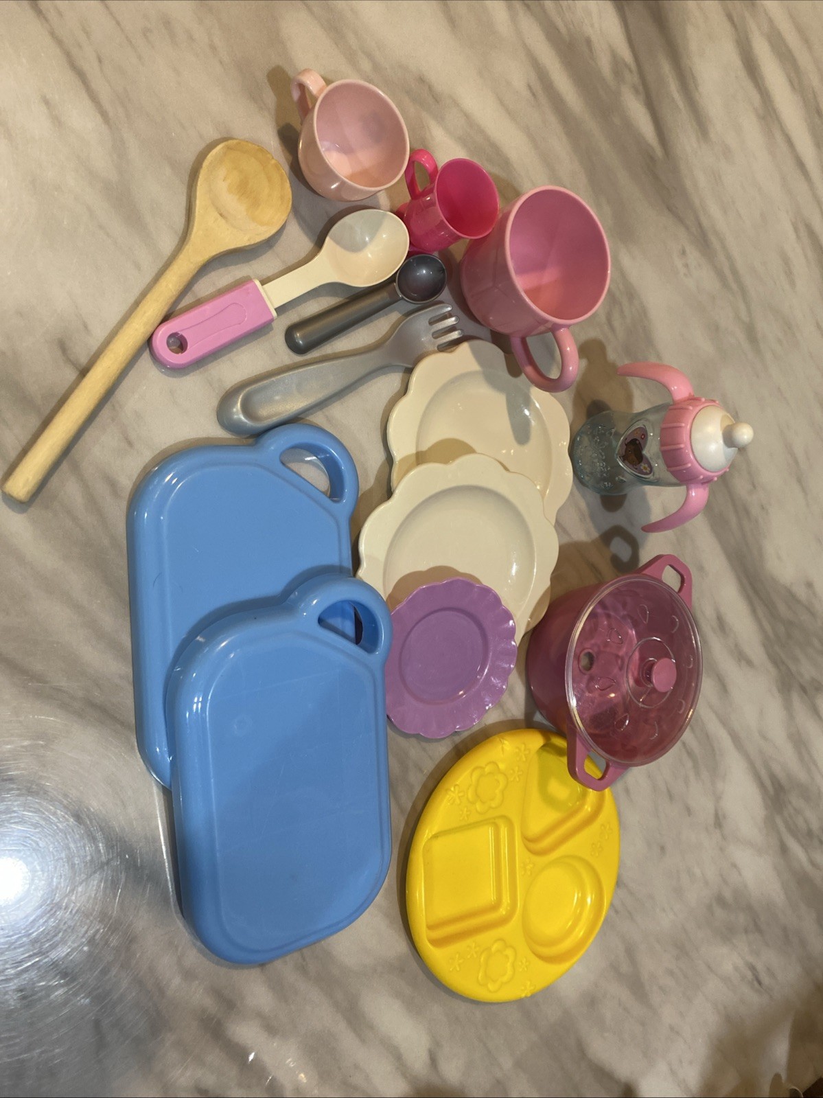 Pretend Play Kitchen Dishes Pot Cups Mugs Spoon Fork Plates Cutting Boards