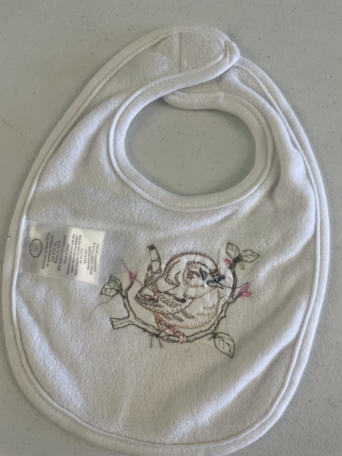 как выглядит Lot Of 5 Baby Bibs Reusable Washable White Embroidered Logo Cotton Regular Fit фото