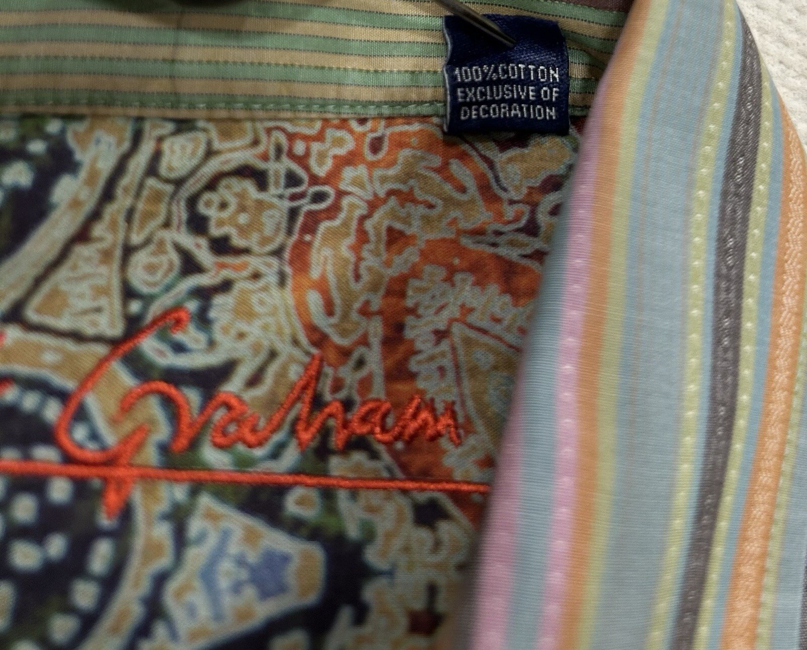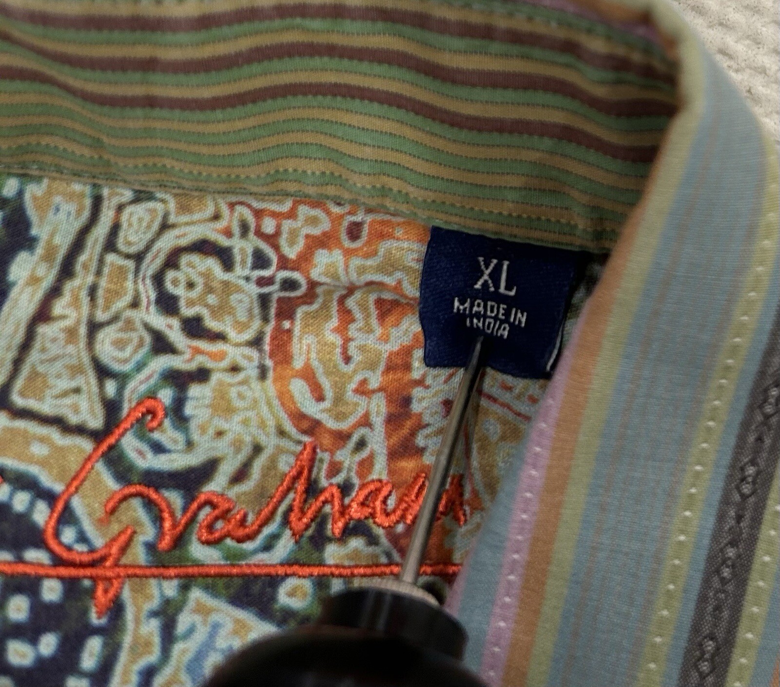 Robert Graham Striped Button Up Shirt Flip Cuff Multicolor Size XL