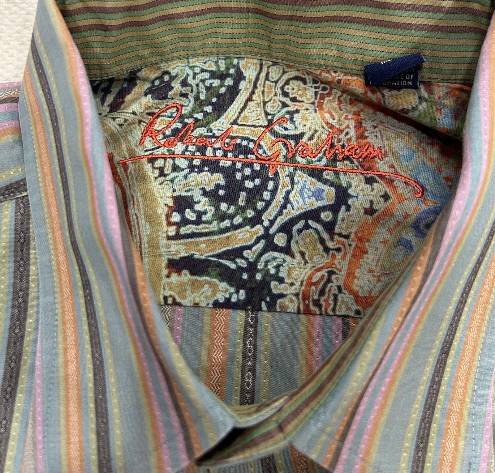 как выглядит Robert Graham Striped Button Up Shirt Flip Cuff Multicolor Size XL фото