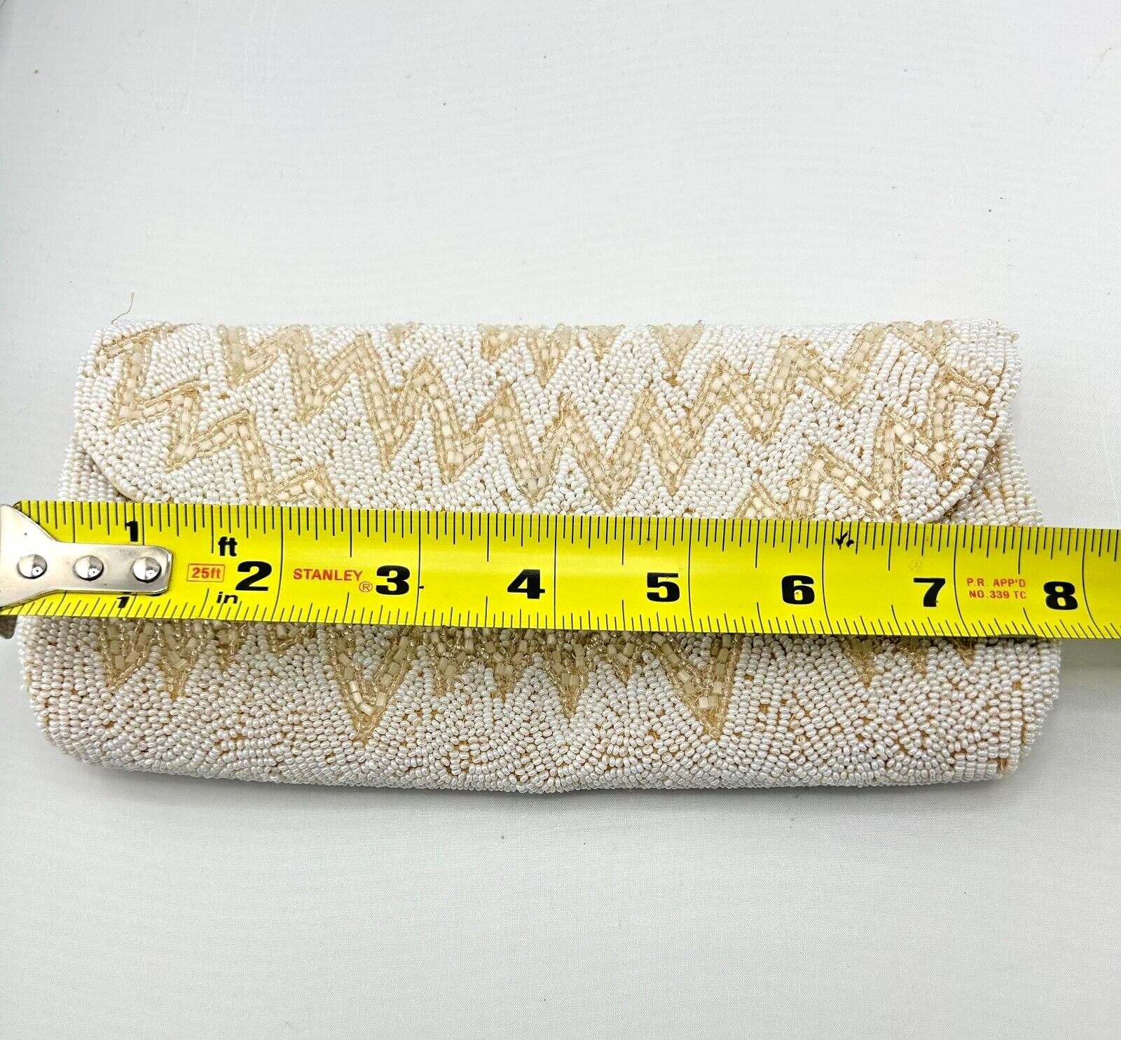 как выглядит Vintage White and Cream Glass Beaded Evening Clutch Bag with a snap closure фото