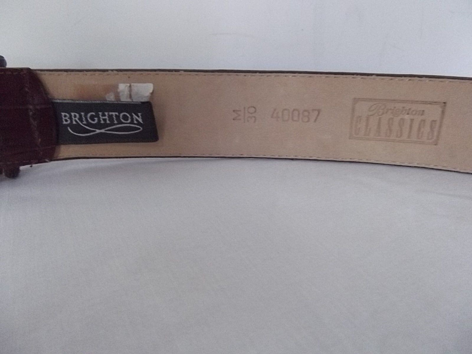 как выглядит vtg Brighton classic belt brn leather faux croc sz 30 40087 silver brass buckle фото
