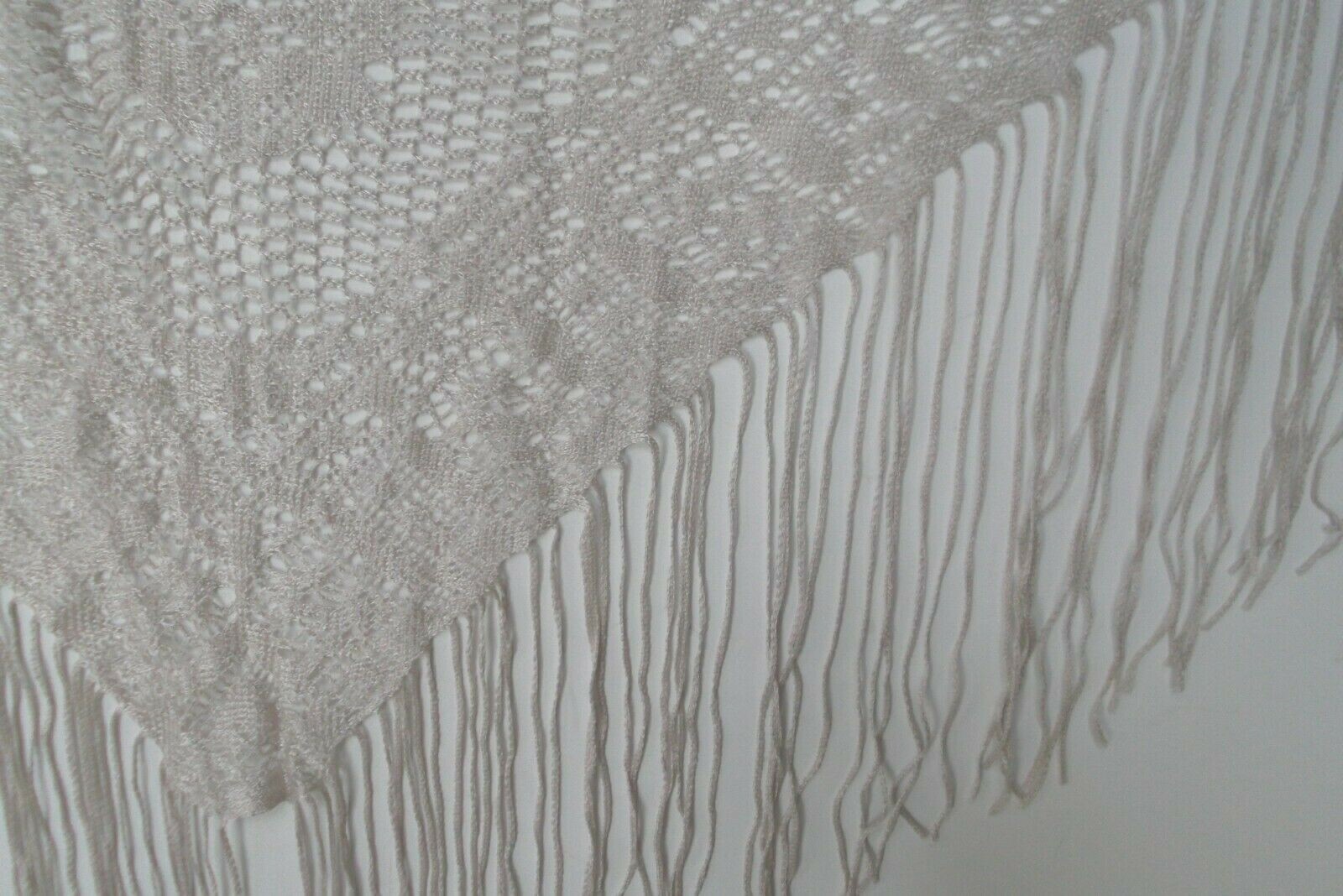 vtg lace triangle scarf wrap shawl floral fringe 63x27 beige SOFT MINT