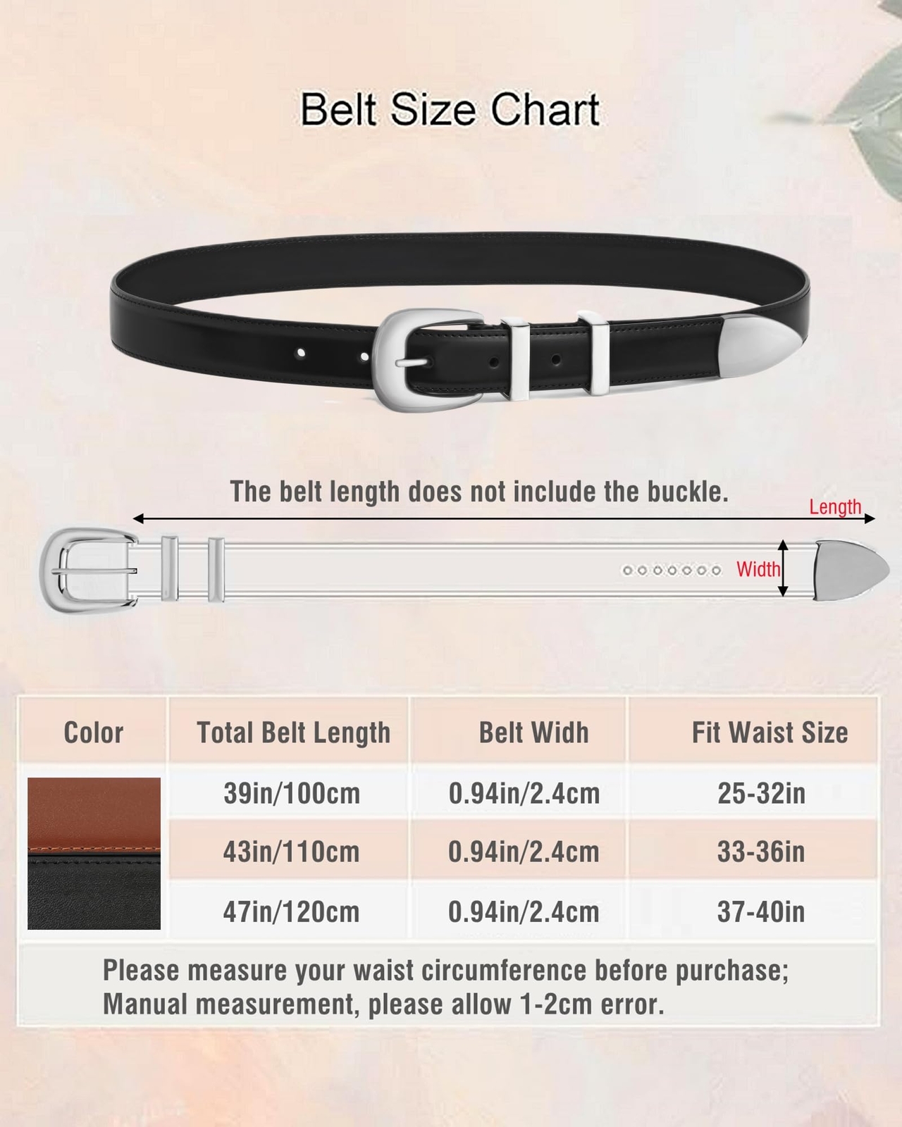 Thin Belts for Women Silver Buckle Belt for Jeans Fashion Adjustable Leather ...