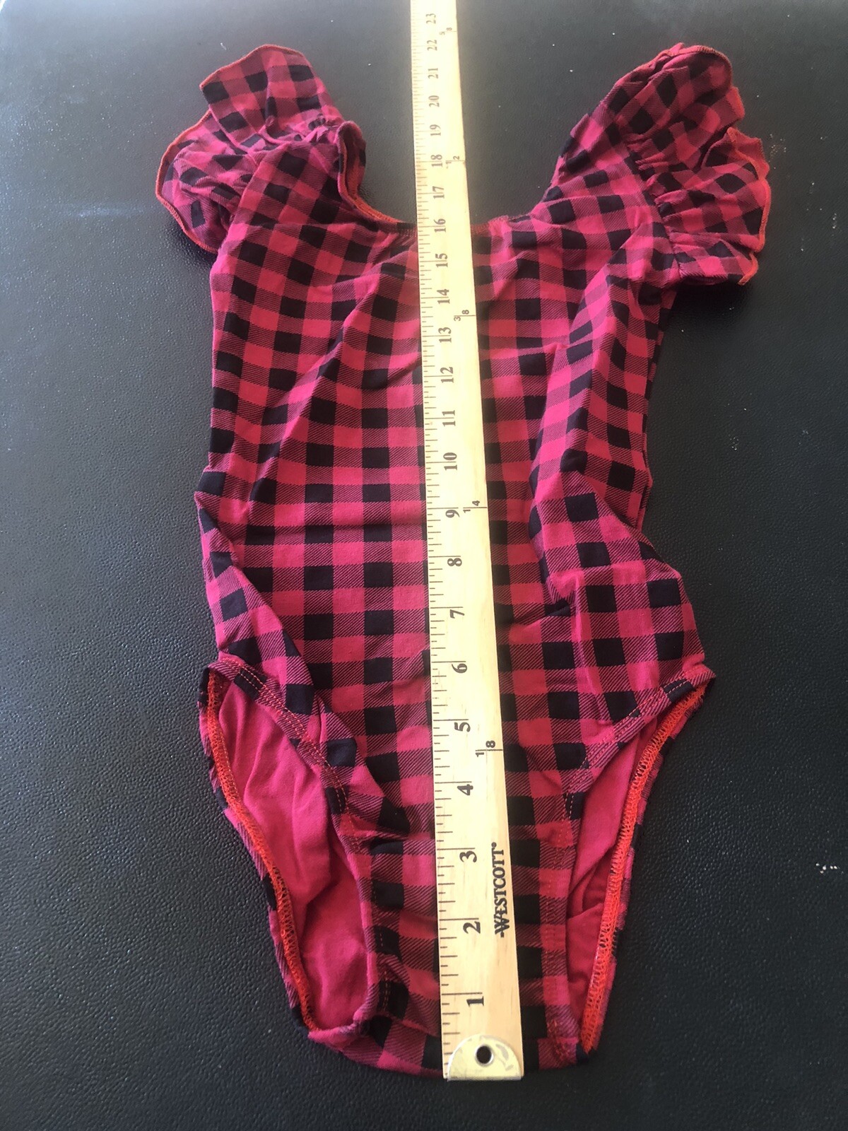 Flutter Sleeve Girls Buffalo Plaid Red Black Stretch Handmade Size L 5/6 New