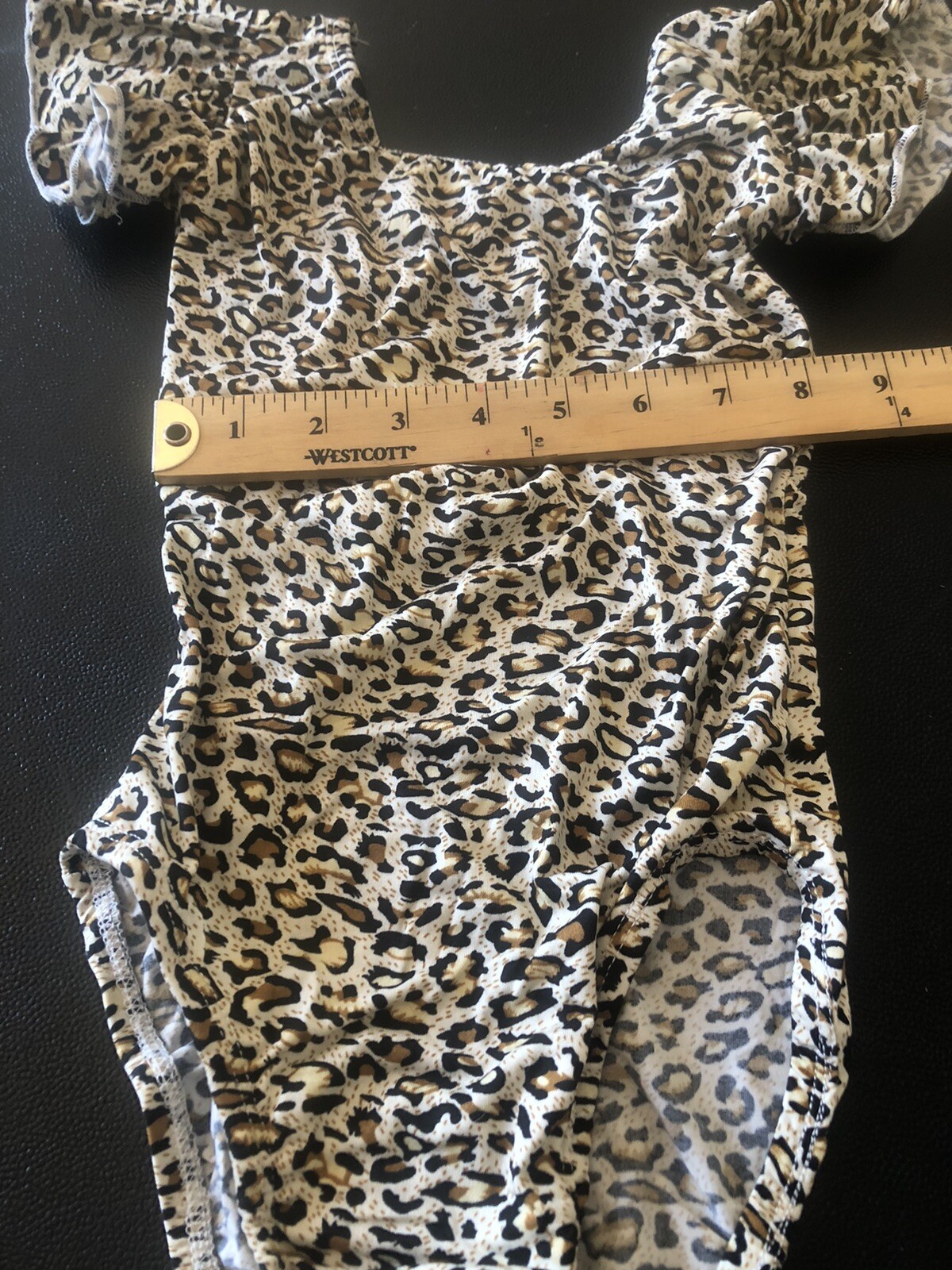 как выглядит Flutter Sleeve Girls Leopard Cheetah Back Bow Stretch Handmade Size L 5/6 New фото