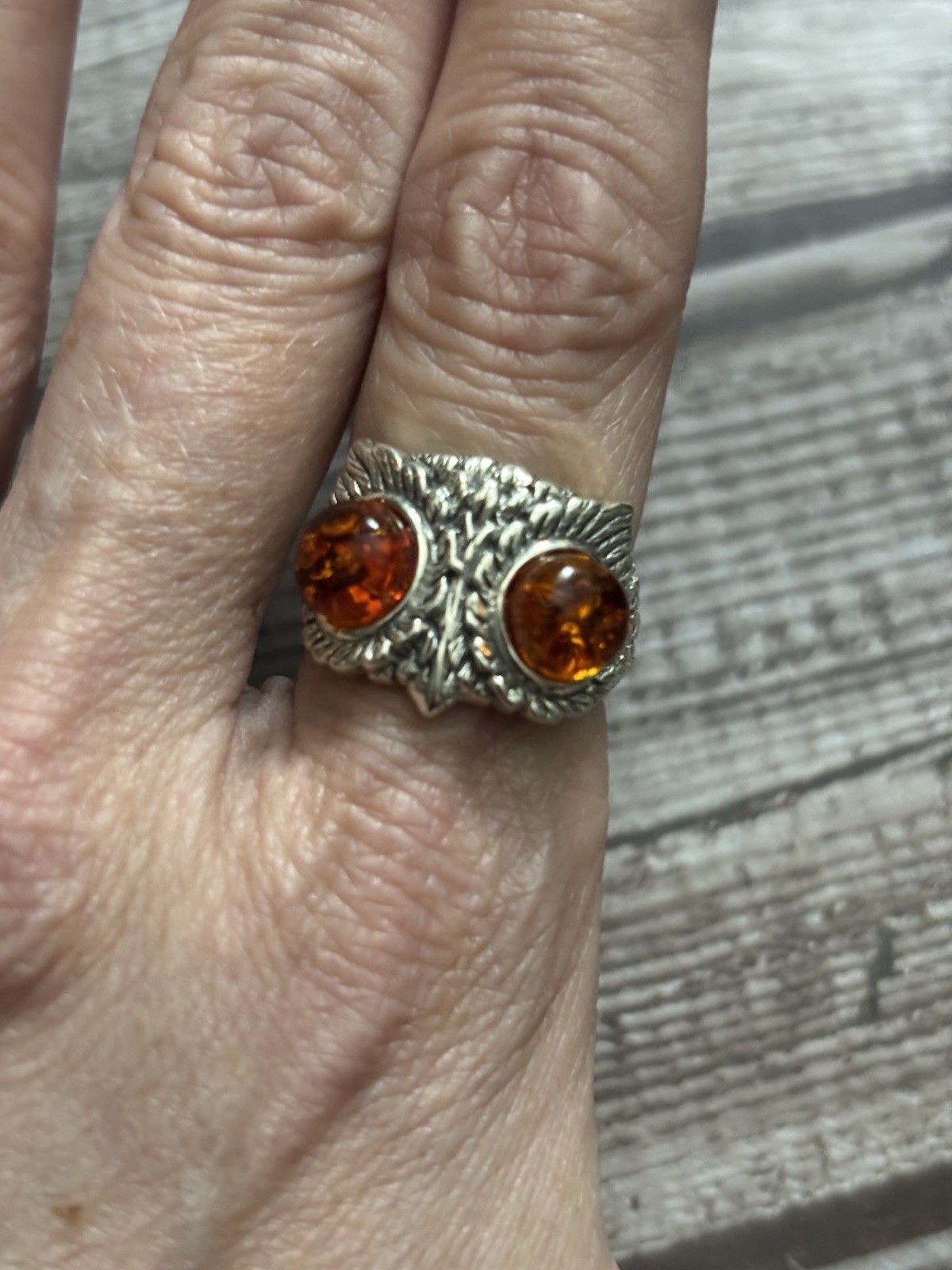 Sterling Silver Owl Face Ring With Amber Eyes Size 7