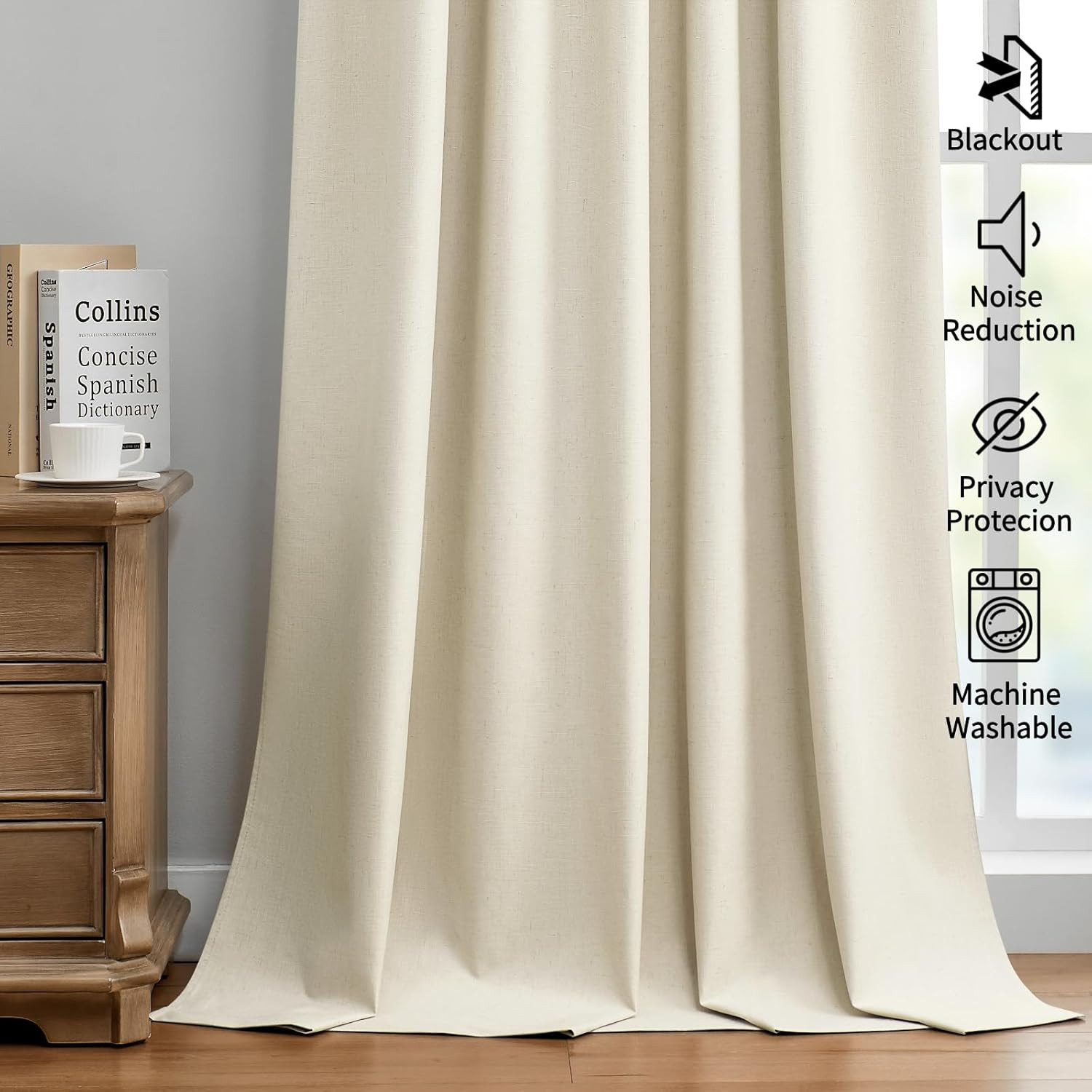 Pinch Pleated Linen Blackout Curtains Two Pages,90 Inches Long,100 Blackout,Tex