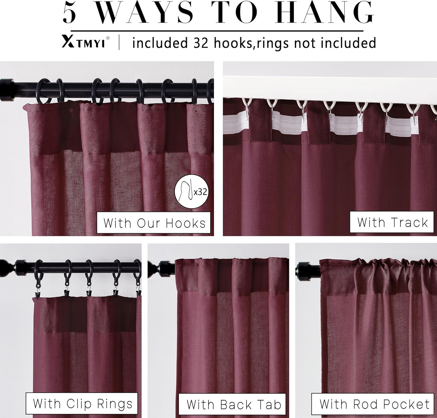 как выглядит Dark Red Burgundy Curtains 63 Inch Length for Dining Room Kitchen Window,2 Panel фото