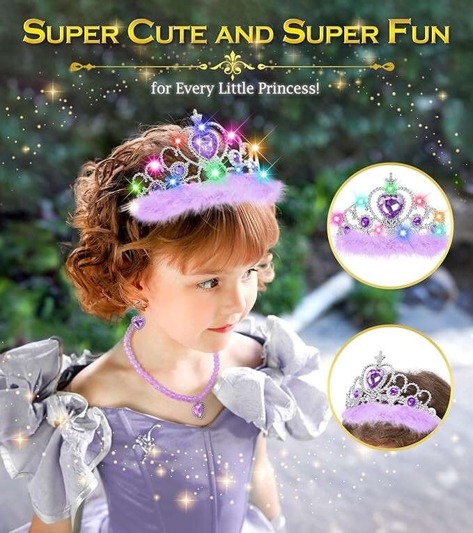 Light Up Princess Crown Tiara Set for Little Girls,Princess Dress Up Accessories