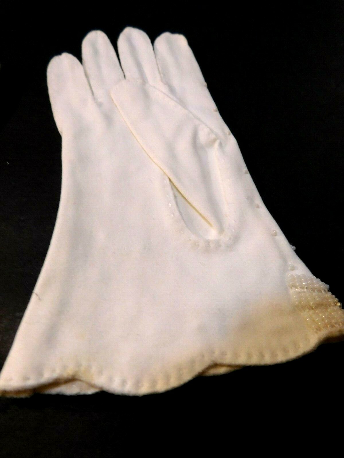 как выглядит DESIGNER LADIES WHITE COTTON BEADED DRESS GLOVES SIZE 6.5 фото