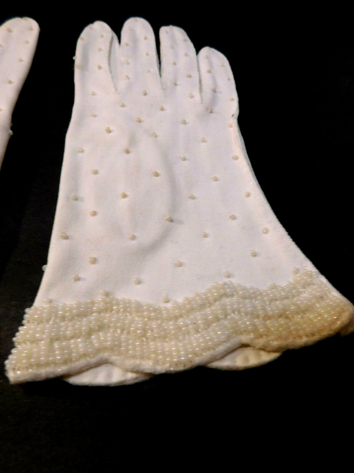 DESIGNER LADIES WHITE COTTON BEADED DRESS GLOVES SIZE 6.5