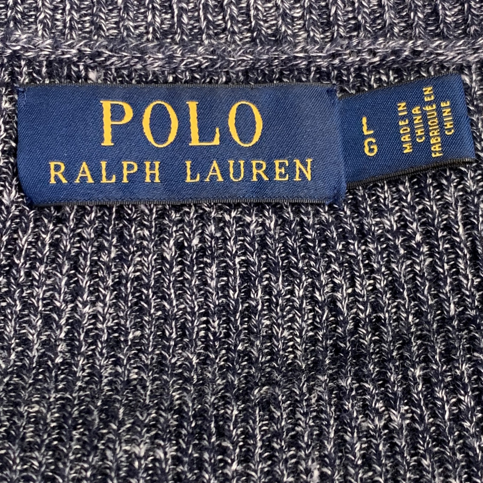 как выглядит POLO by RALPH LAUREN Size L Navy White Heather Linen Wool Cotton Sweater фото