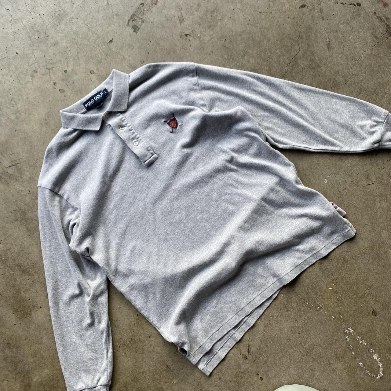 как выглядит Vintage Polo By Ralph Lauren Size L Golf Chest Logo Gray Long Sleeve Polo Shirt фото