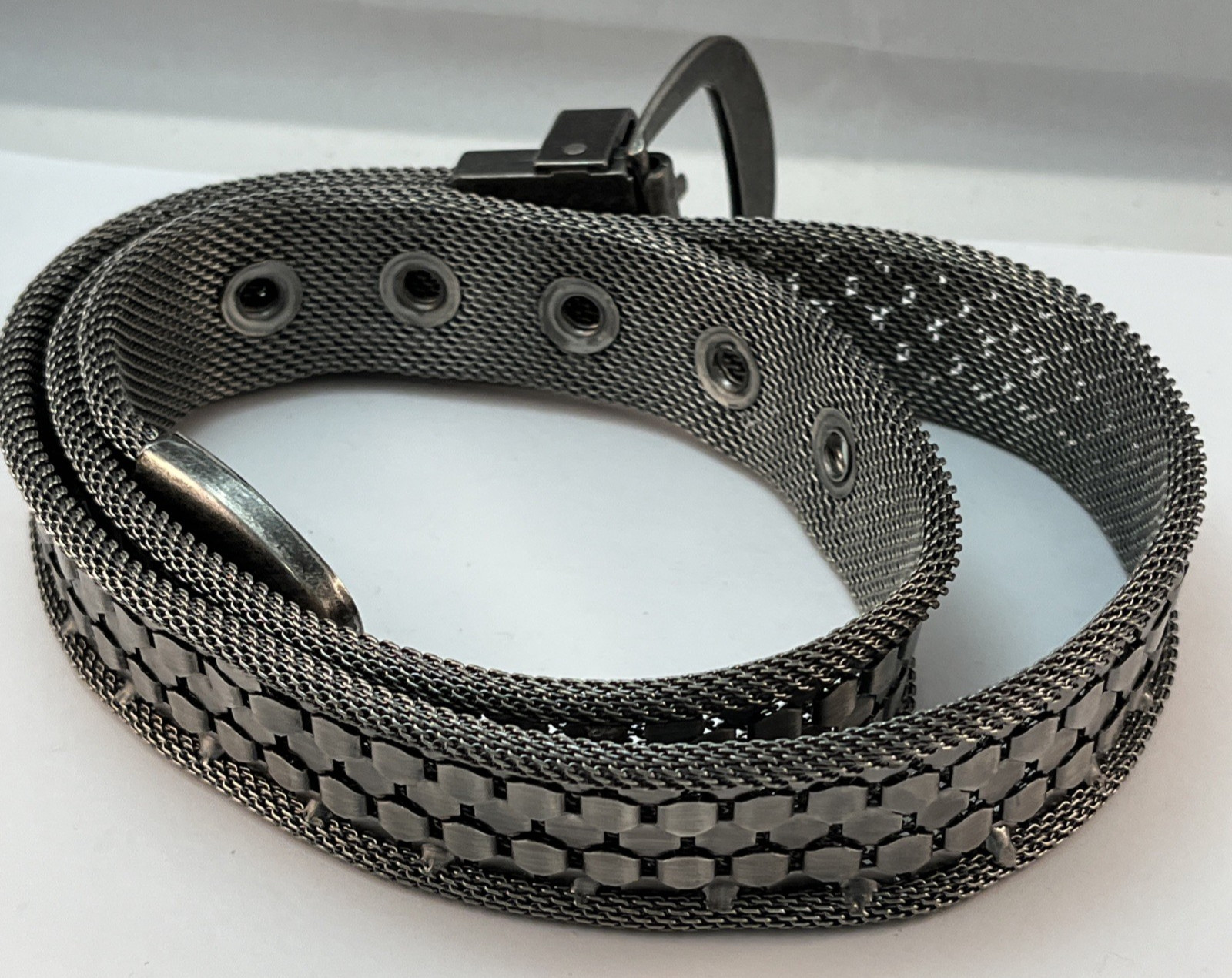 как выглядит Vintage Y2K Silver Tone Mesh Honeycomb Womens Belt Waist 31-35 inches фото