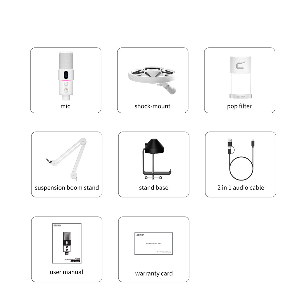 COMICA STA-U2A RGB Cardioid Condenser USB Microphone Boom Arm Kit Recording Mic