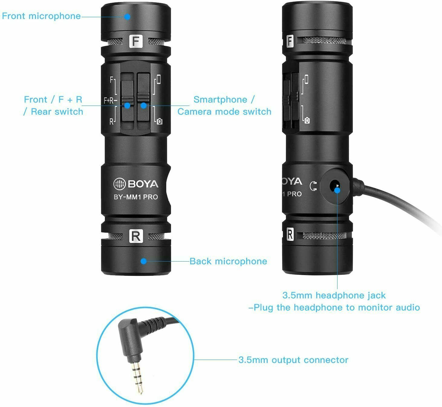 как выглядит BOYA BY-MM1 PRO Dual-head Cardioid Condenser Video Microphone for Camera iPhone фото