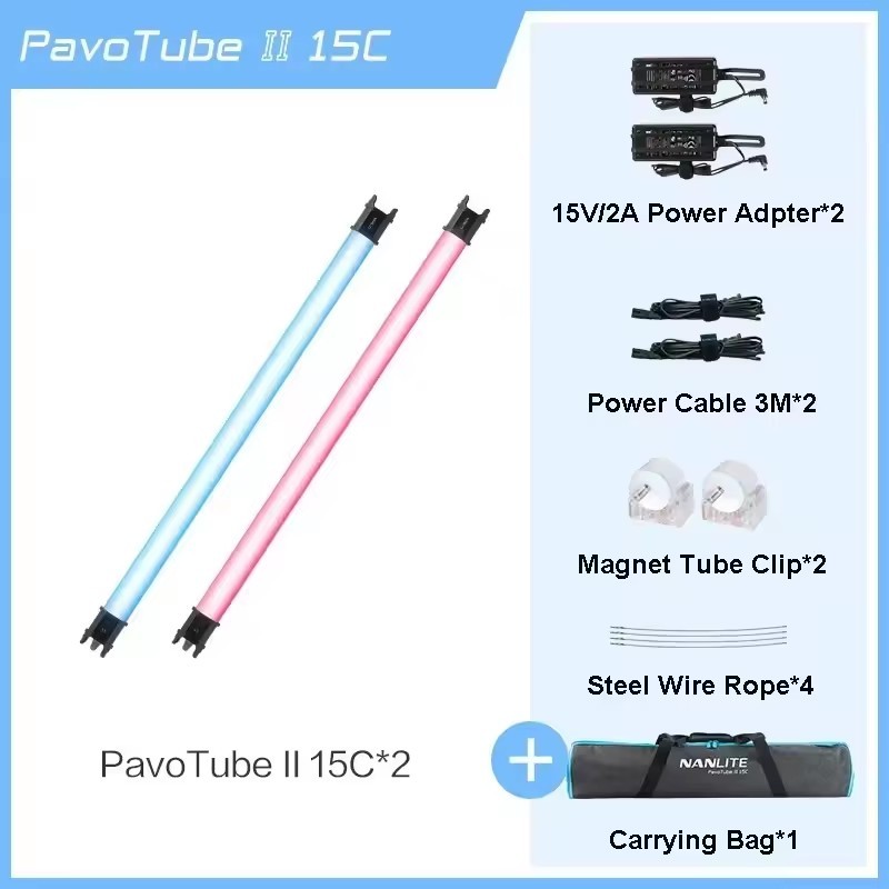 2x Nanlite PavoTube II 15C 77cm RGB Full Color LED Video Tube Light 2700K-7500K