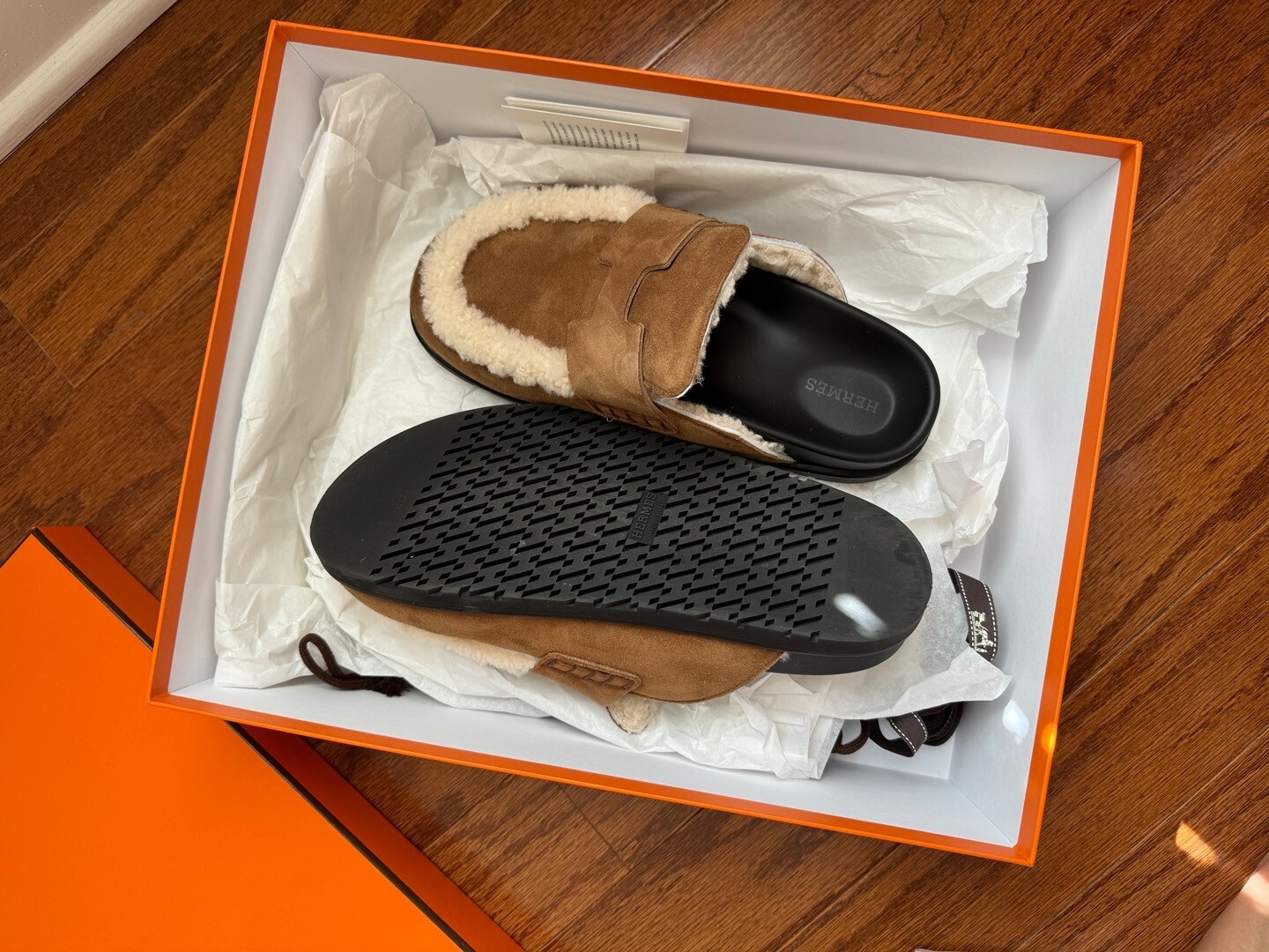 как выглядит Hermes Suede Goatskin Shearling Go Mules Size 36 Women Slip On фото