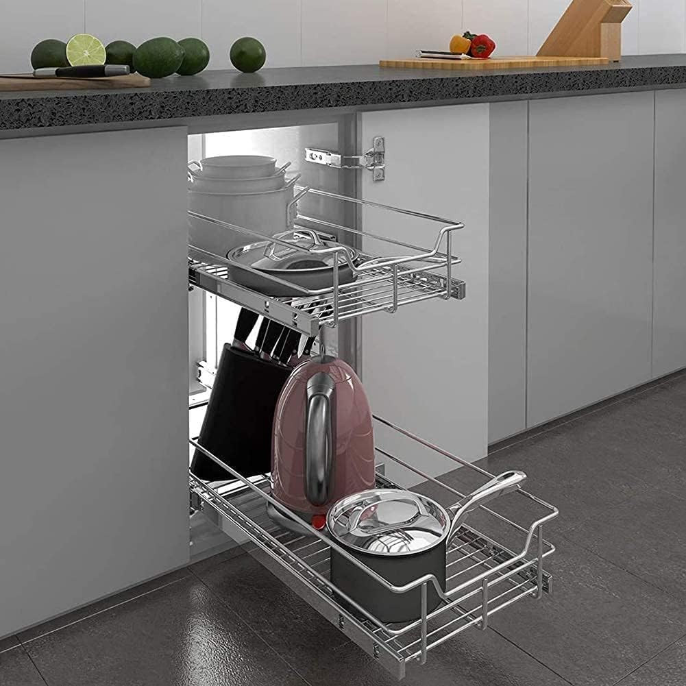 2 Tier Pull Out Cabinet Organizer 14 W X 22 D, Slide Out Drawers for Kitchen C