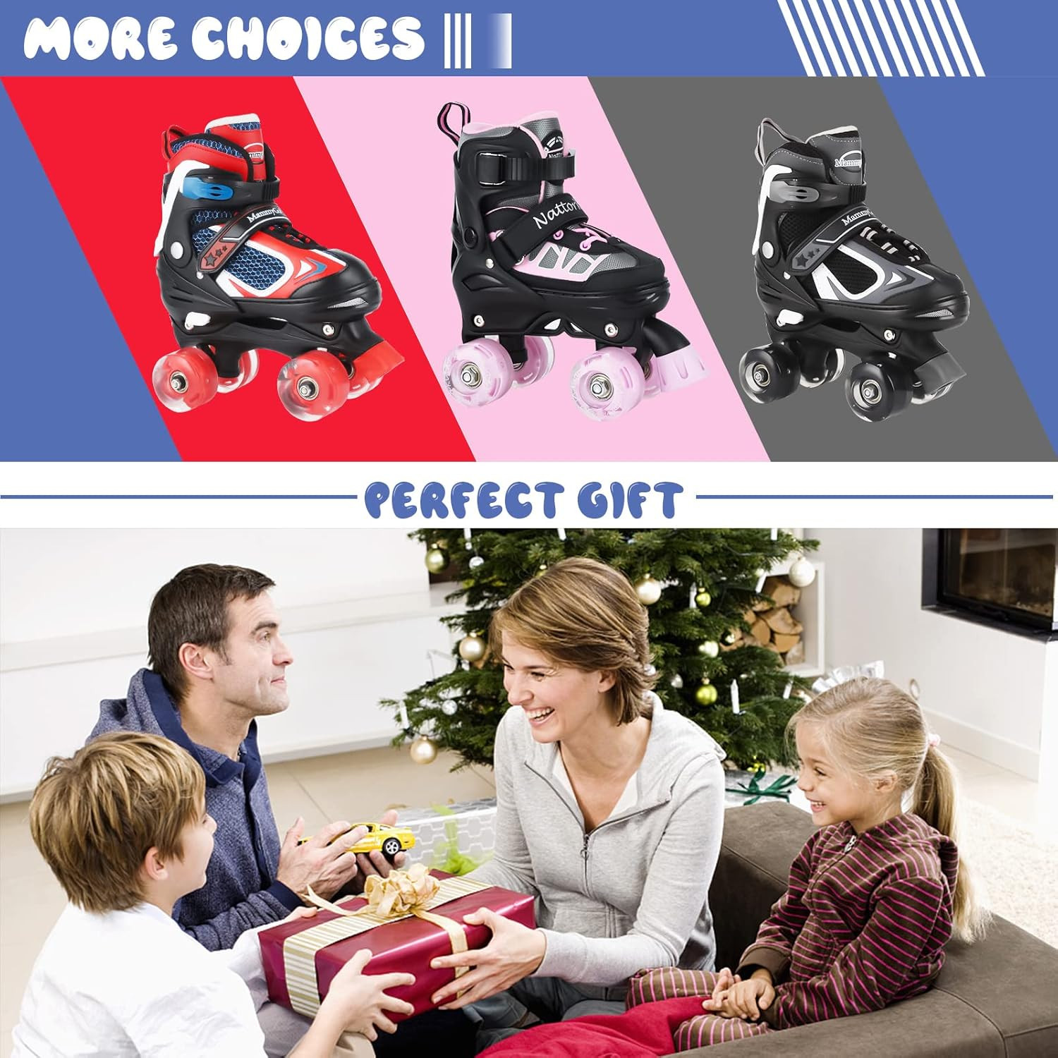 Kids Roller Skates for Boys Girls,4 Sizes Adjustable Roller Skates with Light up