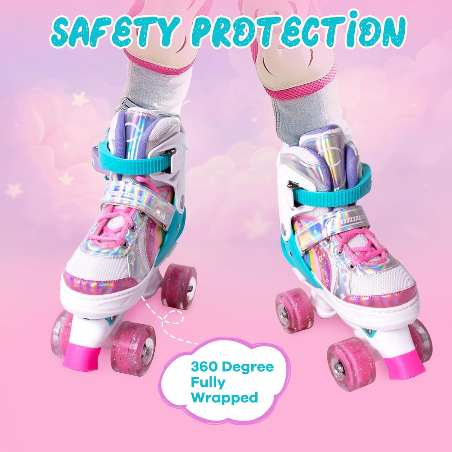 Adjustable Light-Up Rainbow Roller Skates for Kids Ages 3-12