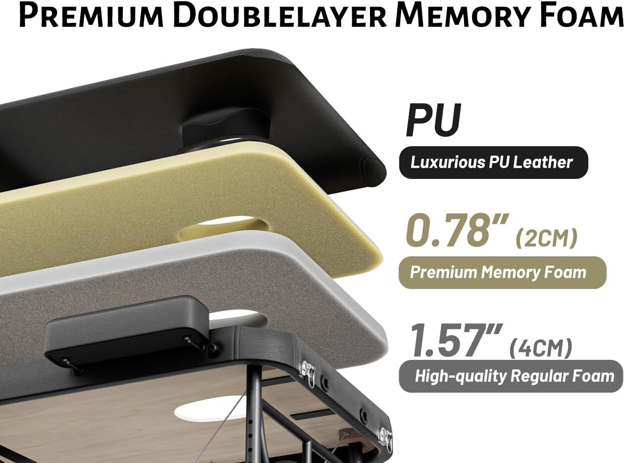 Premium Portable Massage Table - 3-Fold, Memory Foam, Adjustable Height, 1100LBS