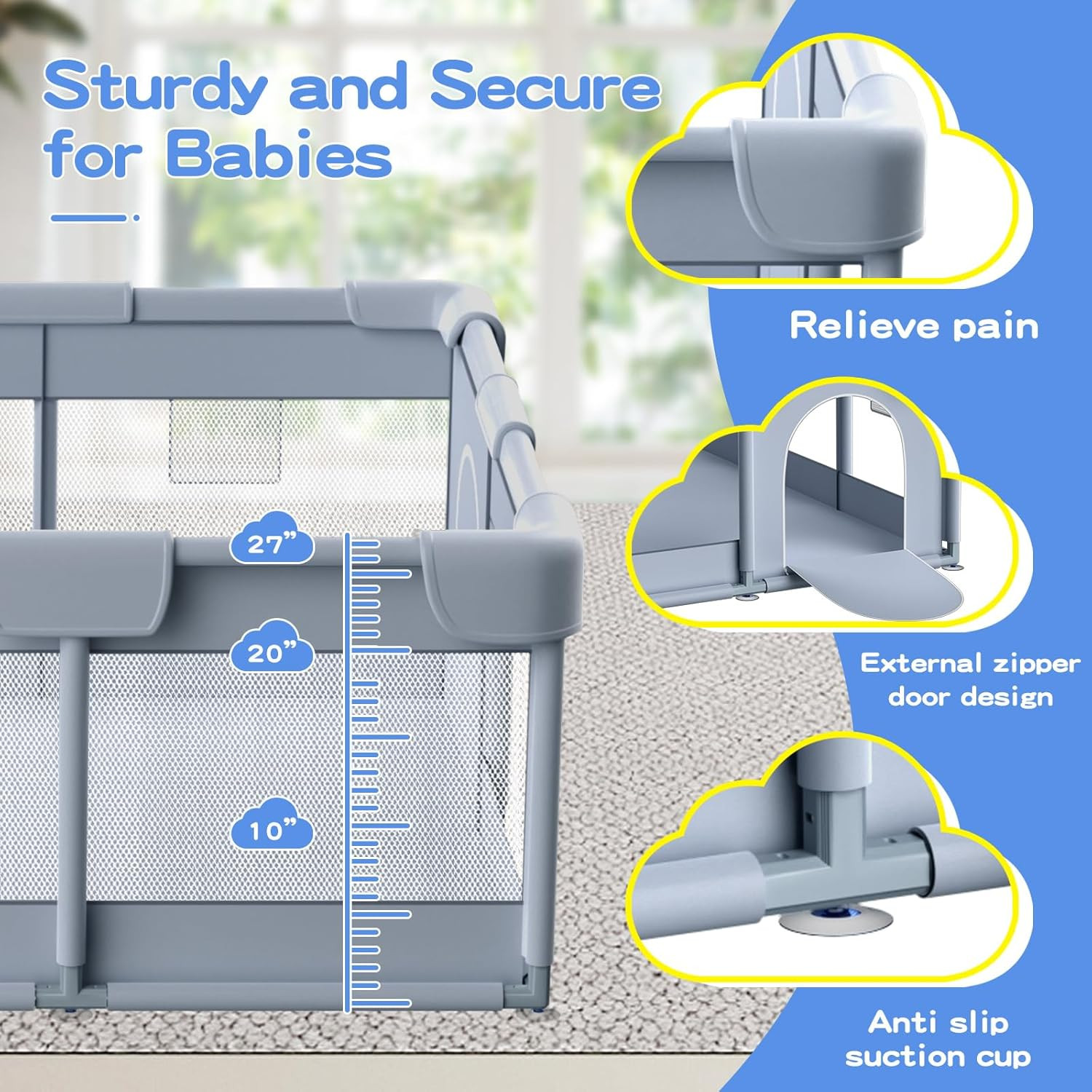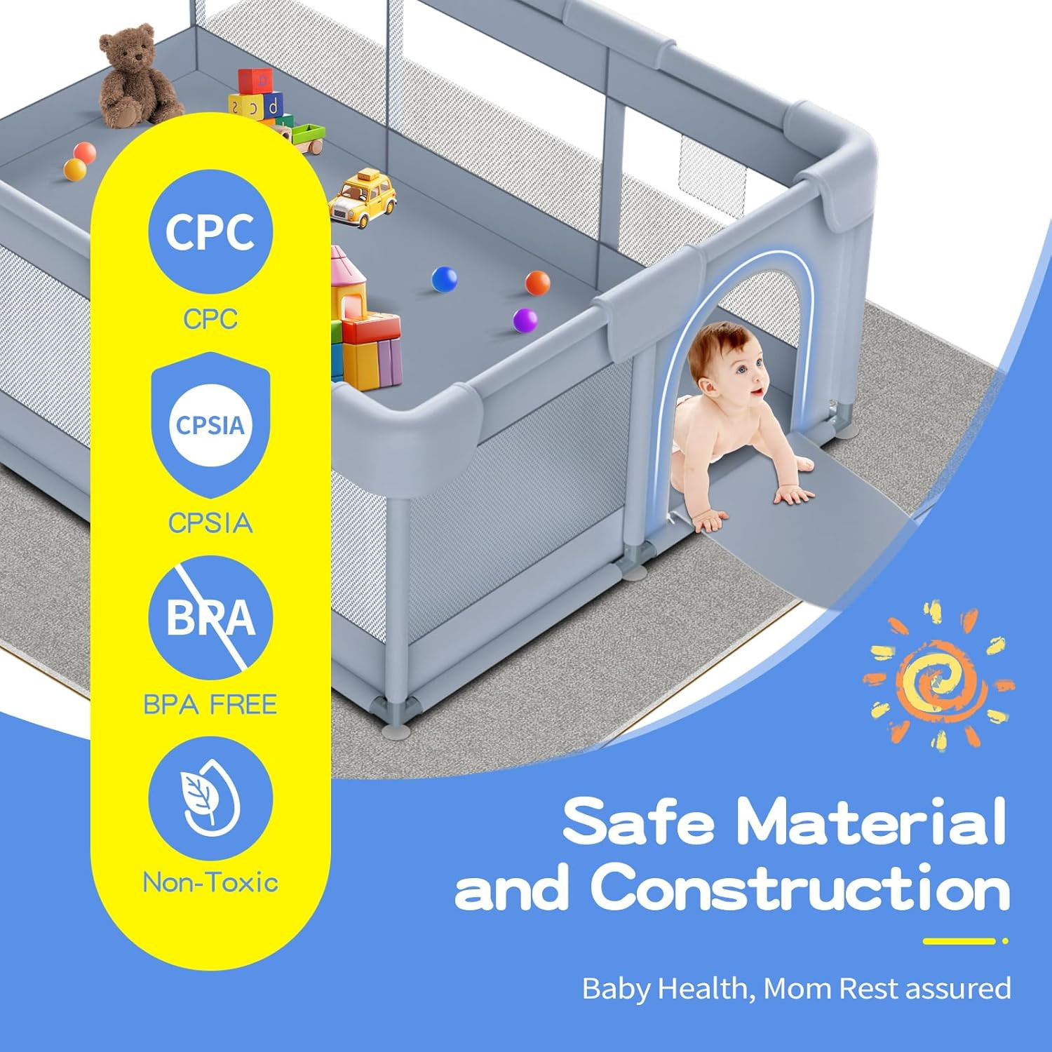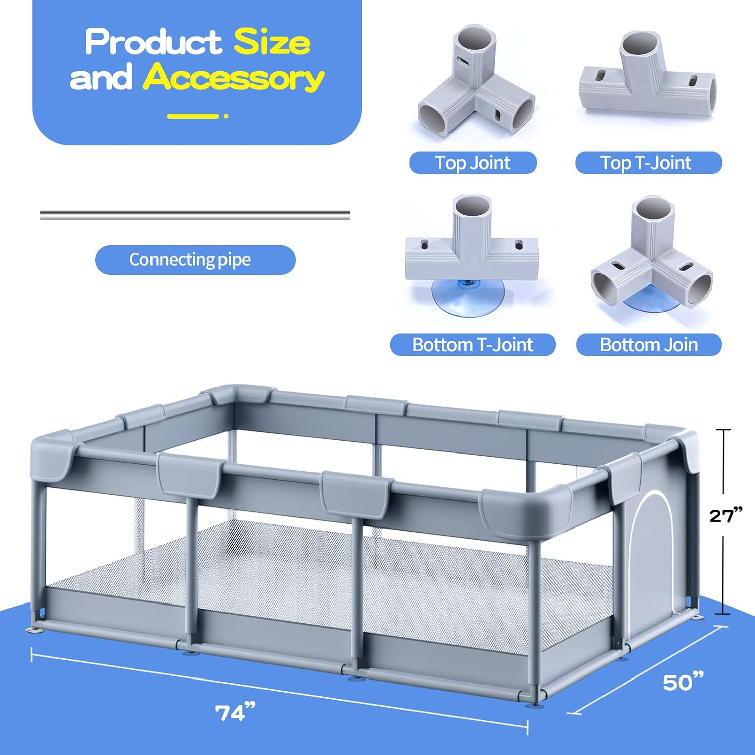 Large Baby Playpen 74x50 Inch - Safe Indoor/Outdoor Play Yard for Toddlers