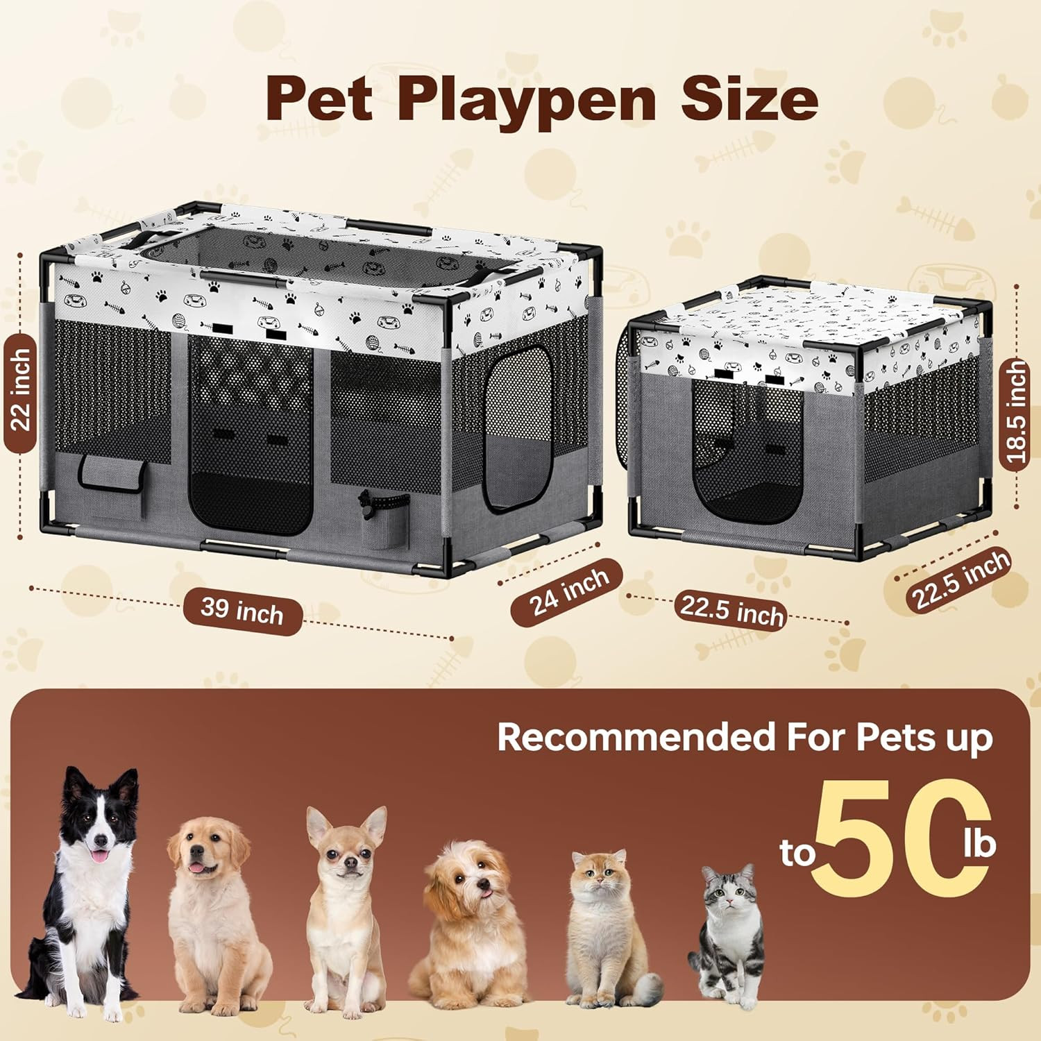 Portable Cat Playpen, Pet Dog Playpen, Kitten Puppy Play Pen for Indoor/Outdoor,