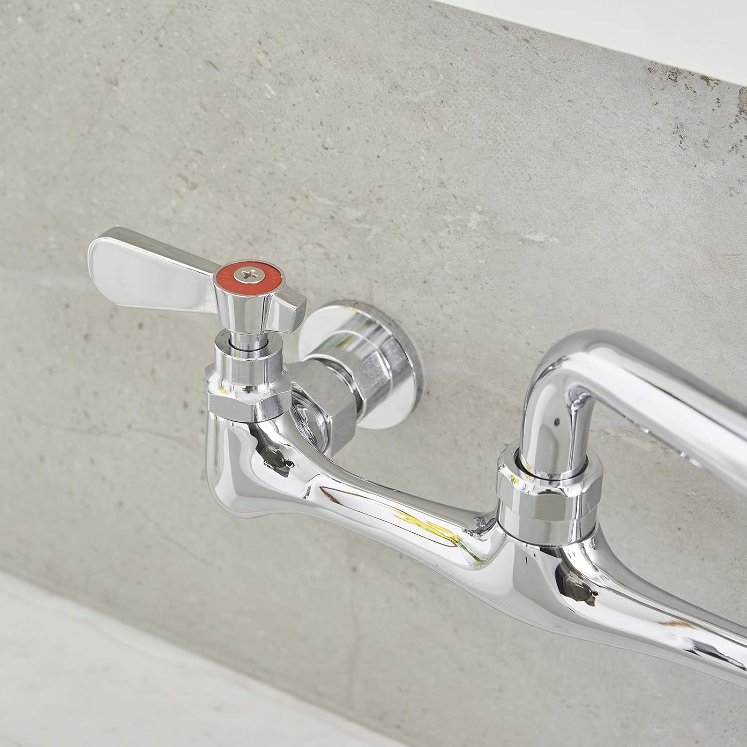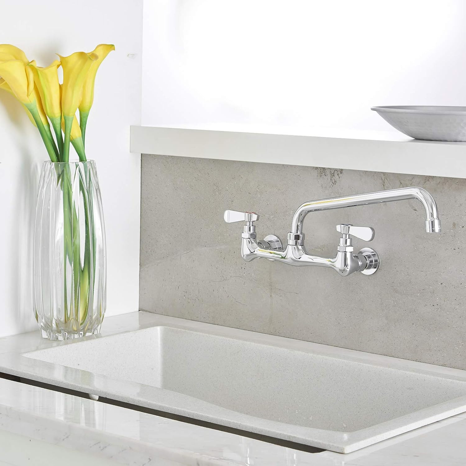 Polished Chrome Wall-Mounted Kitchen Faucet with Adjustable Centers and Swivel S