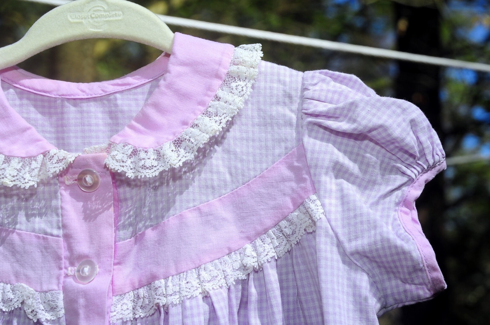 VTG 60's Toddler Girls Lavender Gingham Check Party Dress Cotton w/ Lace 2T-3