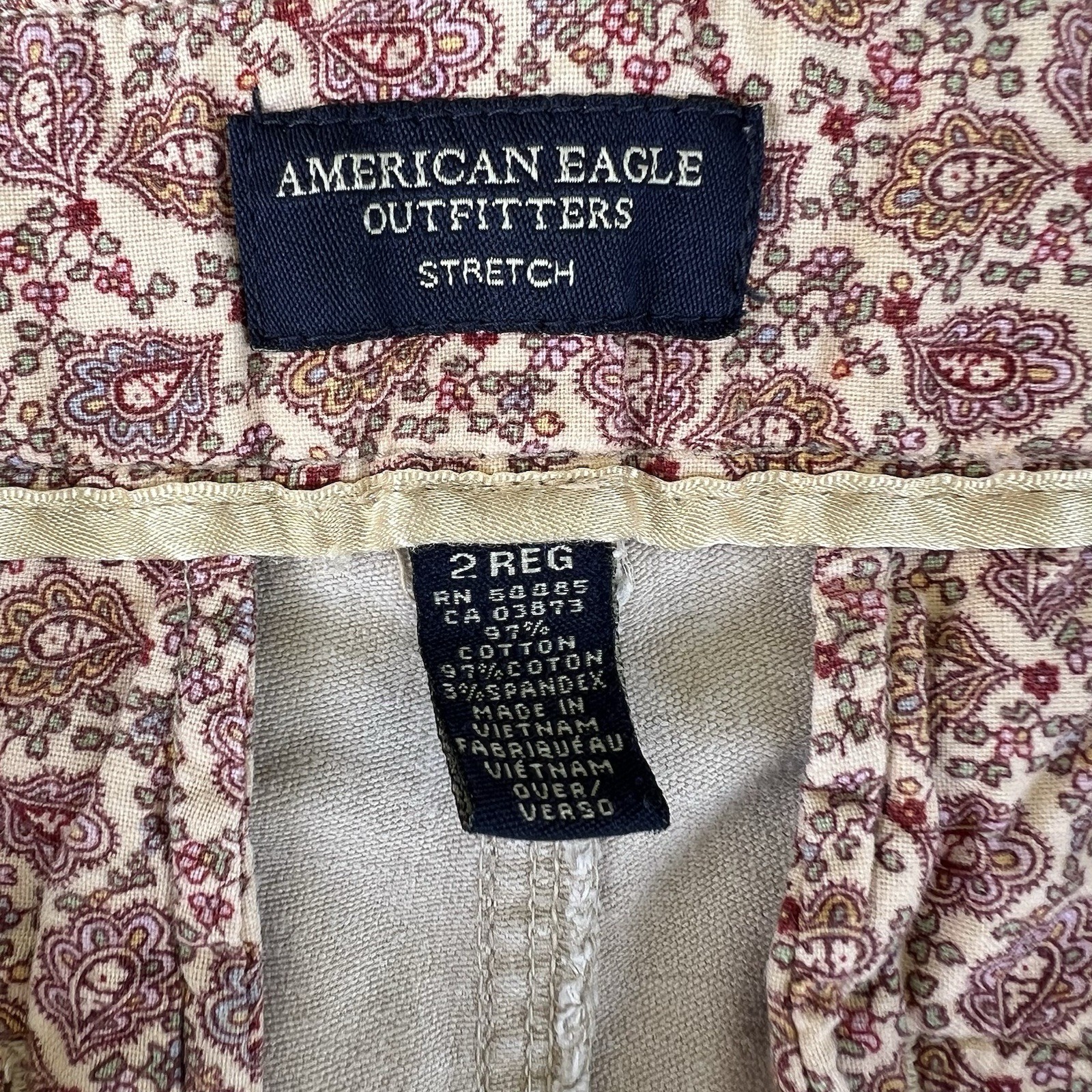 American Eagle Pants Girls Size 2 Light Beige Stretch Casual Flare Chino Paisley