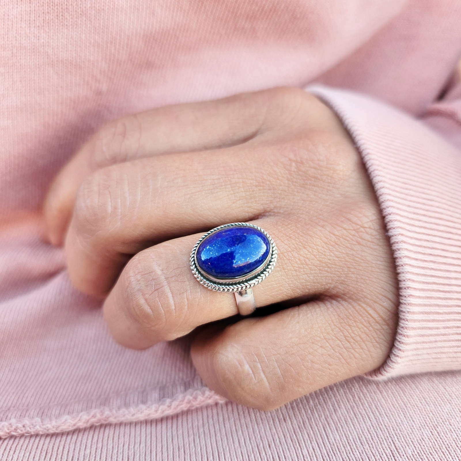 Genuine Lapis Lazuli Ring 925 Sterling Silver Statement Ring Ships From USA