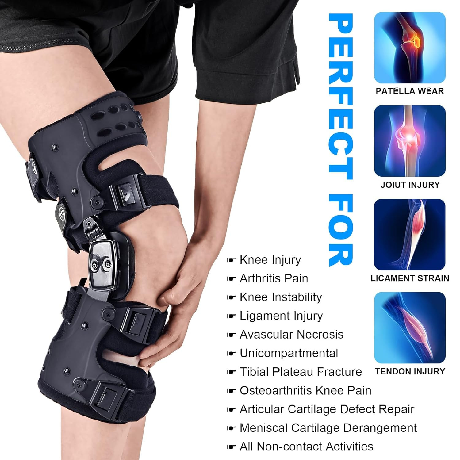 OA Unloader Knee Brace for Osteoarthritis Joint Pain Relief - Right Black