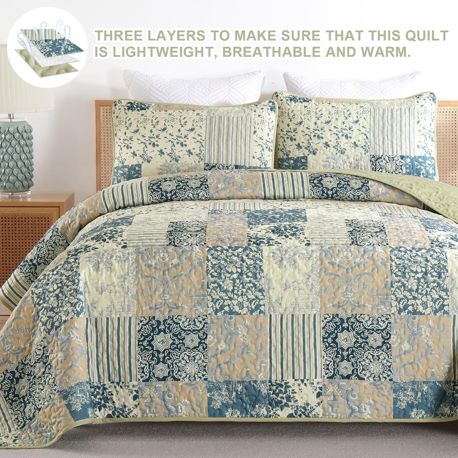 Patchwork Quilt Set Queen Size, Vintage Bedspread Coverlet Set 3 Pieces for All