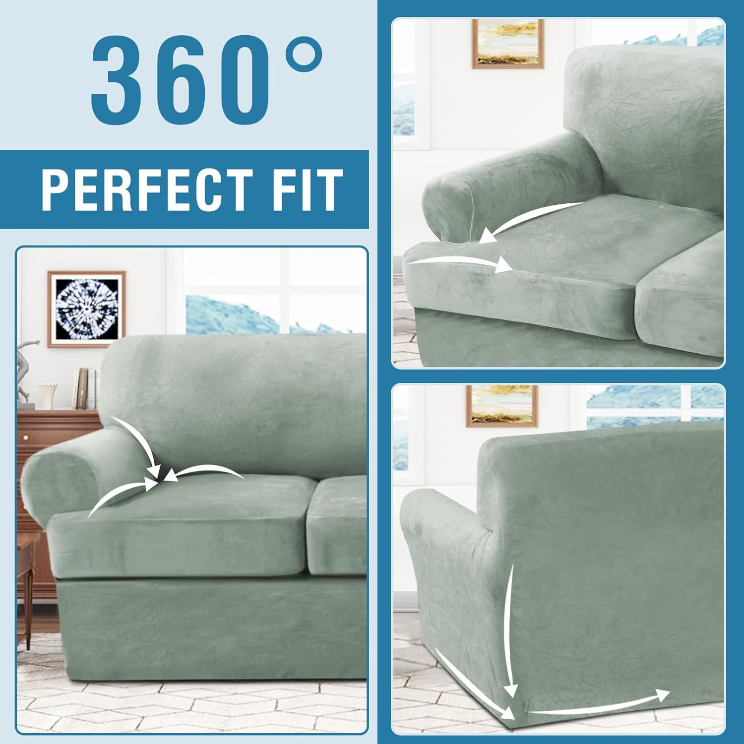 Sofa Cover 3 Piece T Cushion Sofa Slipcovers Thick Velvet Couch Cover Stretch T