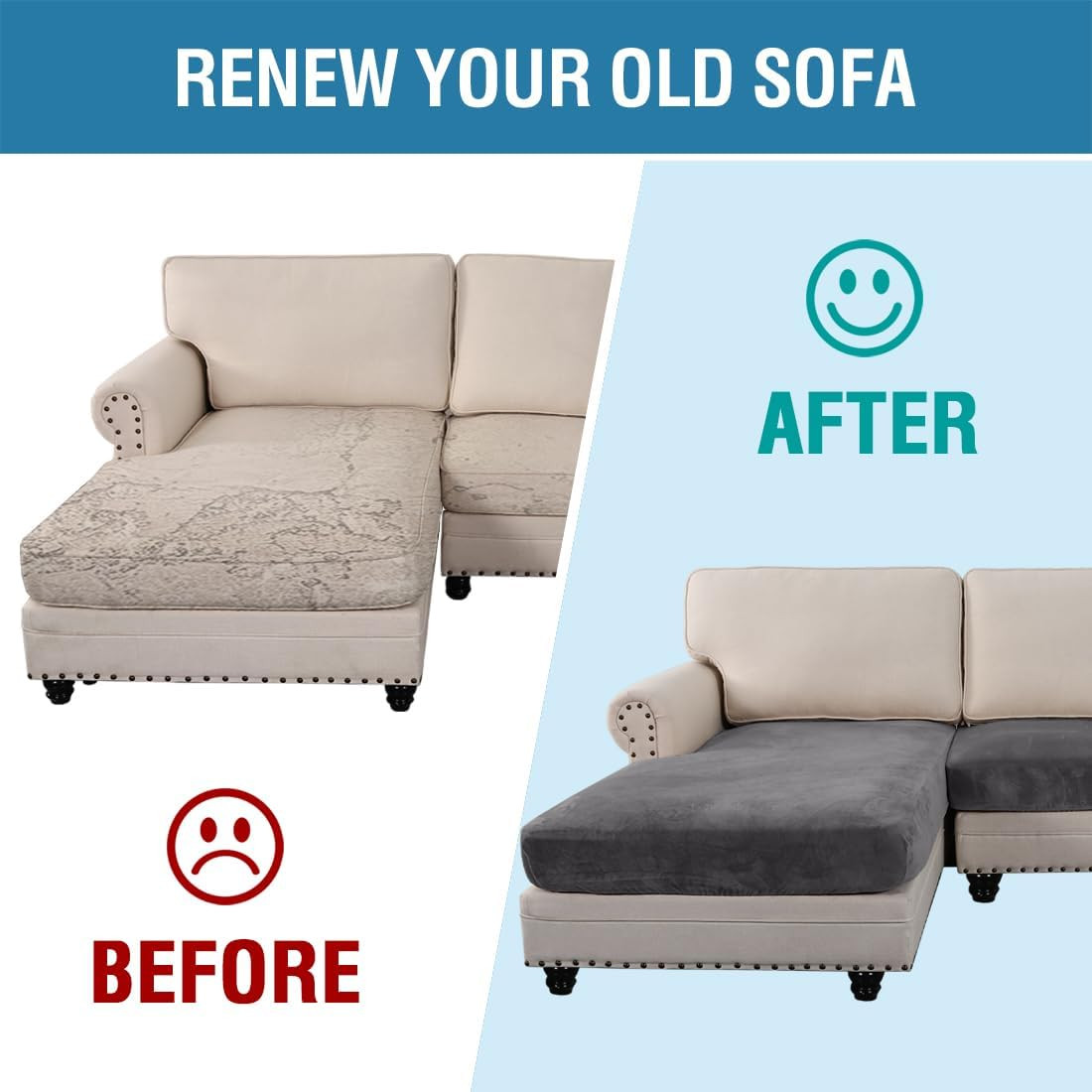 Velvet Stretch Sectional Couch Covers 3 Pieces Sofa Seat Cushion Covers L Shape